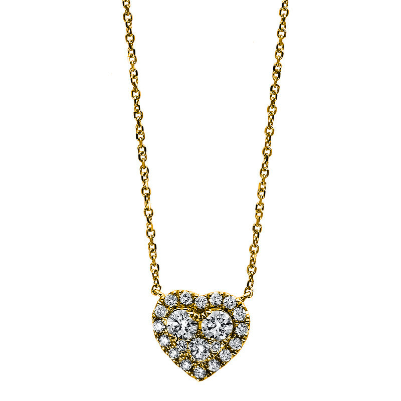 necklace 18 kt YG "heart", 3 diamonds 0,18 ct, G-si, 19 diamonds 0,10 ct, G-si, h:7,6 mm, w:8,2 mm, l:45,0 cm