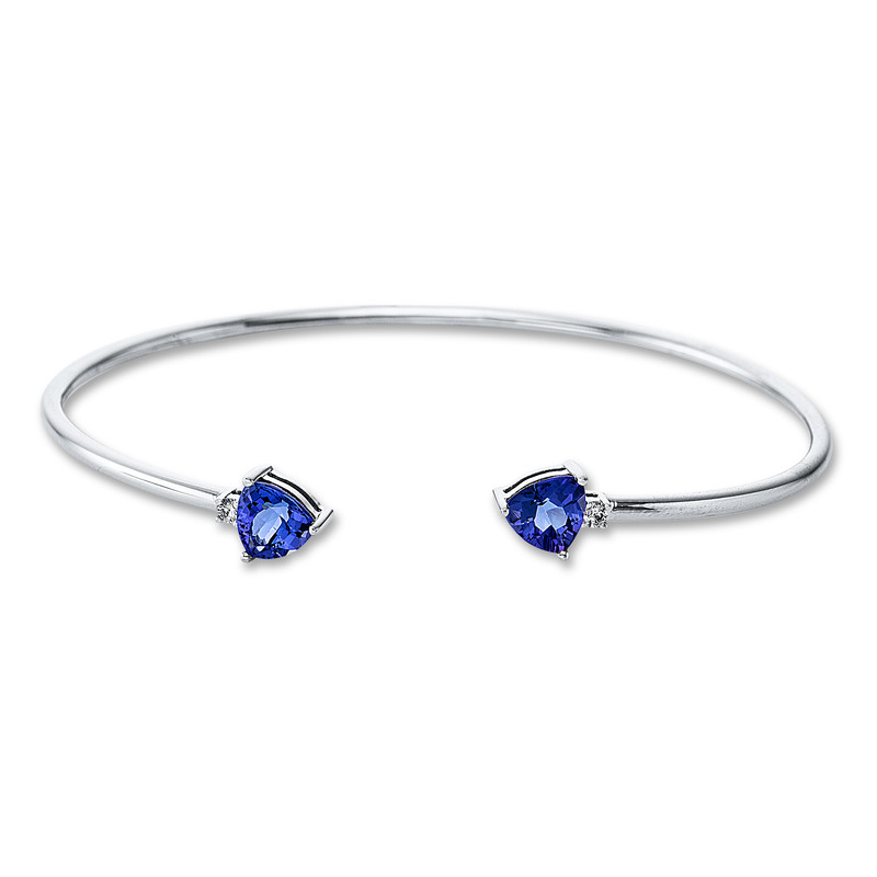 bangle 14 kt WG, 2 diamonds 0,07 ct, G-si, 2 tanzanite 1,63 ct blue, h:50,0 mm, w:60,0 mm