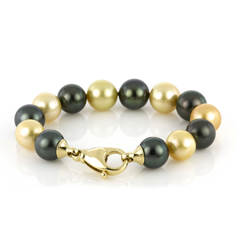 bracelet 18 kt YG, 13 TA + SS green + white 12,5-13.5mm