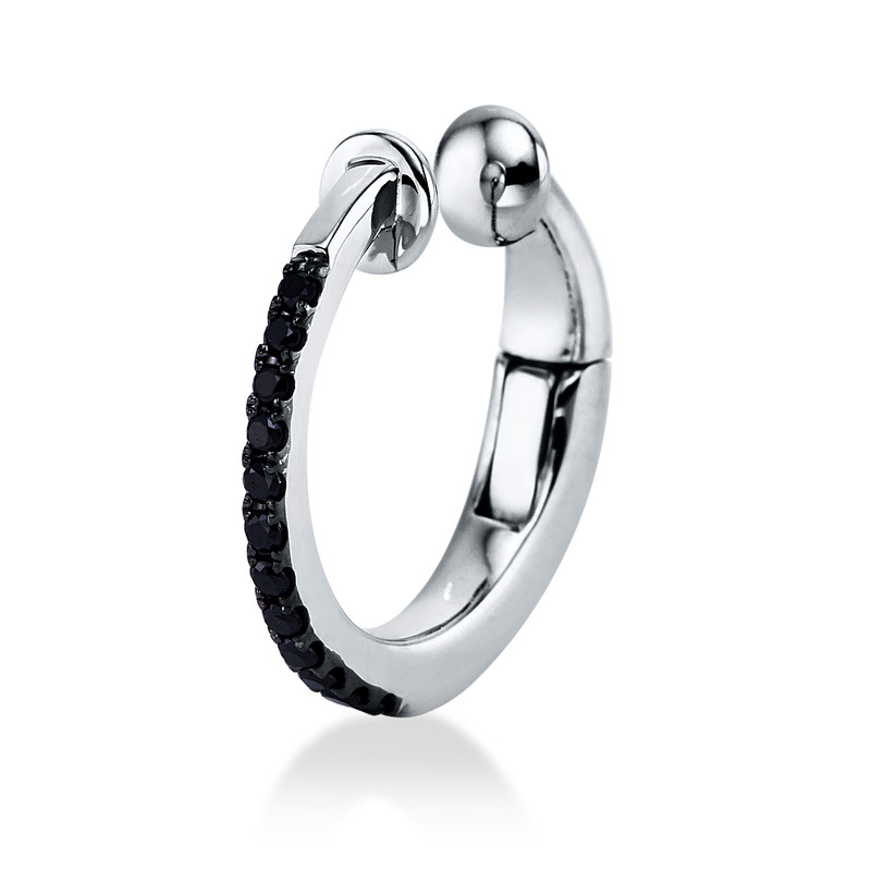 earrings 18 kt WG, setting partly black rhodium, 12 diamonds 0,07 ct, black