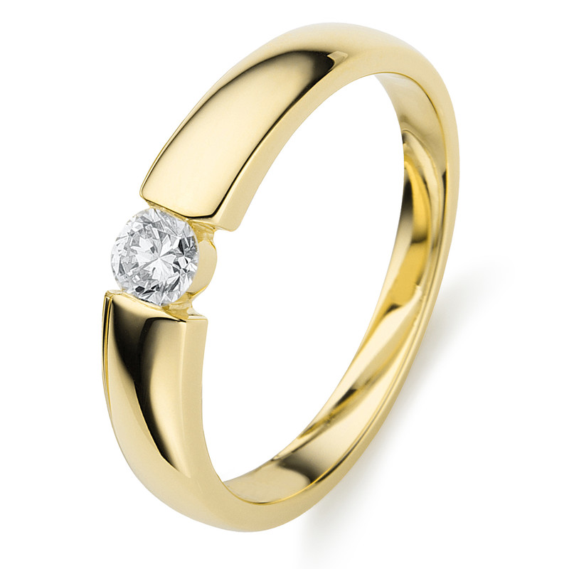ring 14 kt YG, polished, 1 diamond 0,20 ct, G-si, w:3,9 mm, width:54