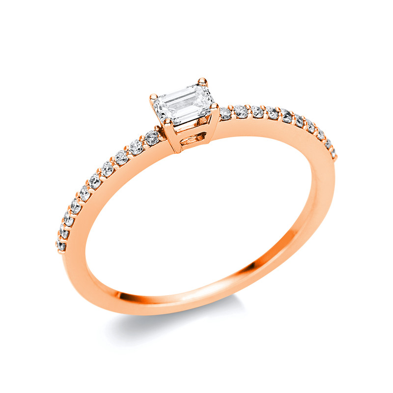 ring 18 kt RG, 20 diamonds 0,14 ct, G-si, 1 em.cut 0,19 ct, G-si, width:53,5