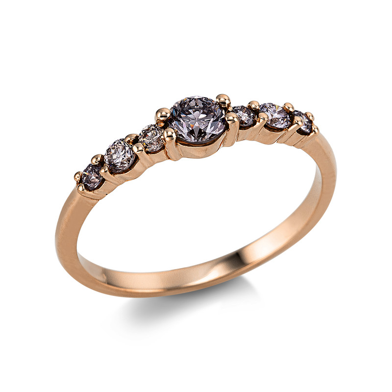 ring 18 kt RG, 7 diamonds 0,53 ct, brown, h:3,8 mm, width:53