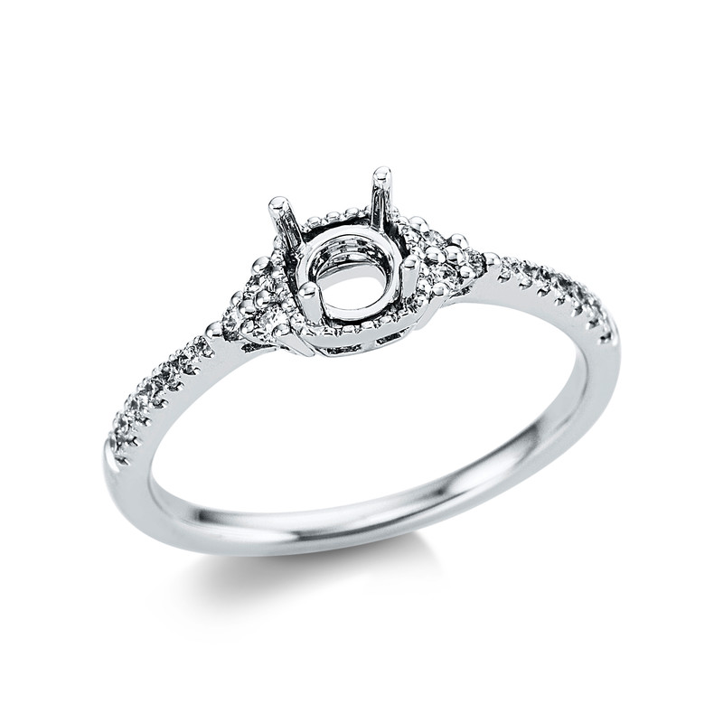 ring 18 kt WG, 20 diamonds 0,18 ct, G-si, mounting for 1x diamond 0,35 ct 4.4 mm, width:53