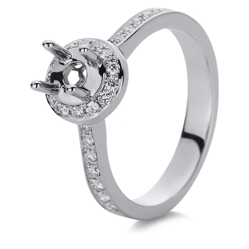 ring 4 prongs 18 kt WG, 28 diamonds 0,40 ct, G-vsi/si, mounting for 1x 0,30-0,40 ct, width:54
